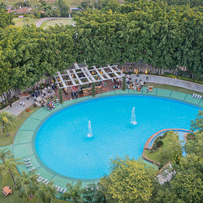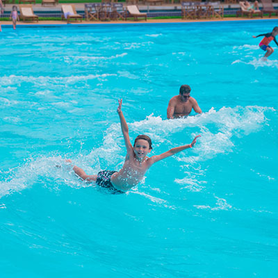 Contamos con tres piscinas especiales para niños con una profundidad máxima de 30 cm con pequeños toboganes y juegos acuáticos. Además una piscina con olas artificiales de más de 500 m2 y una piscina exclusiva para Miembros RAKIURA.